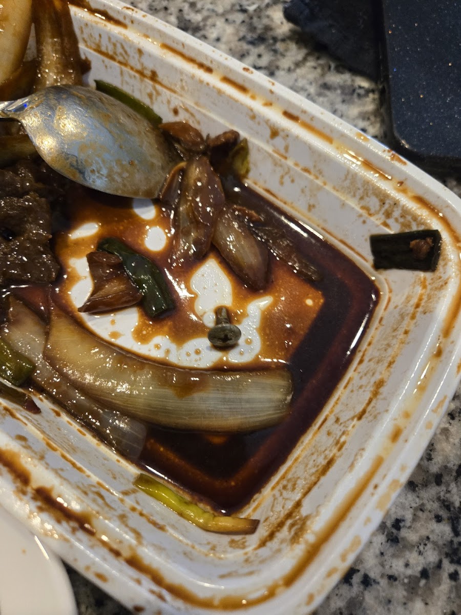 This is a great place for fast takeout. They have 3 booths inside where you could sit and eat, but you're probably better off taking the food with you. Our food was ready in just 10 minutes and the portions were huge! Everything we ordered was wonderful. We had orange chicken, sweet and sour chicken, and chicken lo mein. We also tried the krab rangoon, which was tasty, but I would have liked a bit more filling in each one. Everything with a 10% tip was only $50, and it fed an adult and two teenagers for dinner, plus we have enough left for 1-2 lunches for 3 people. The large sizes are truly large! Each could feed two adults for dinner easily. The great food combined with the ridiculously fast preparation time and great value mean we will definitely be back. See my pictures for the full menu and prices as of June 2024.